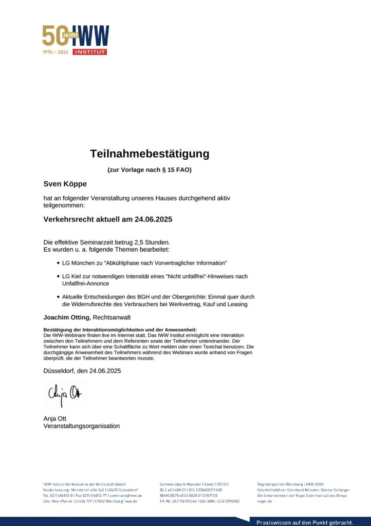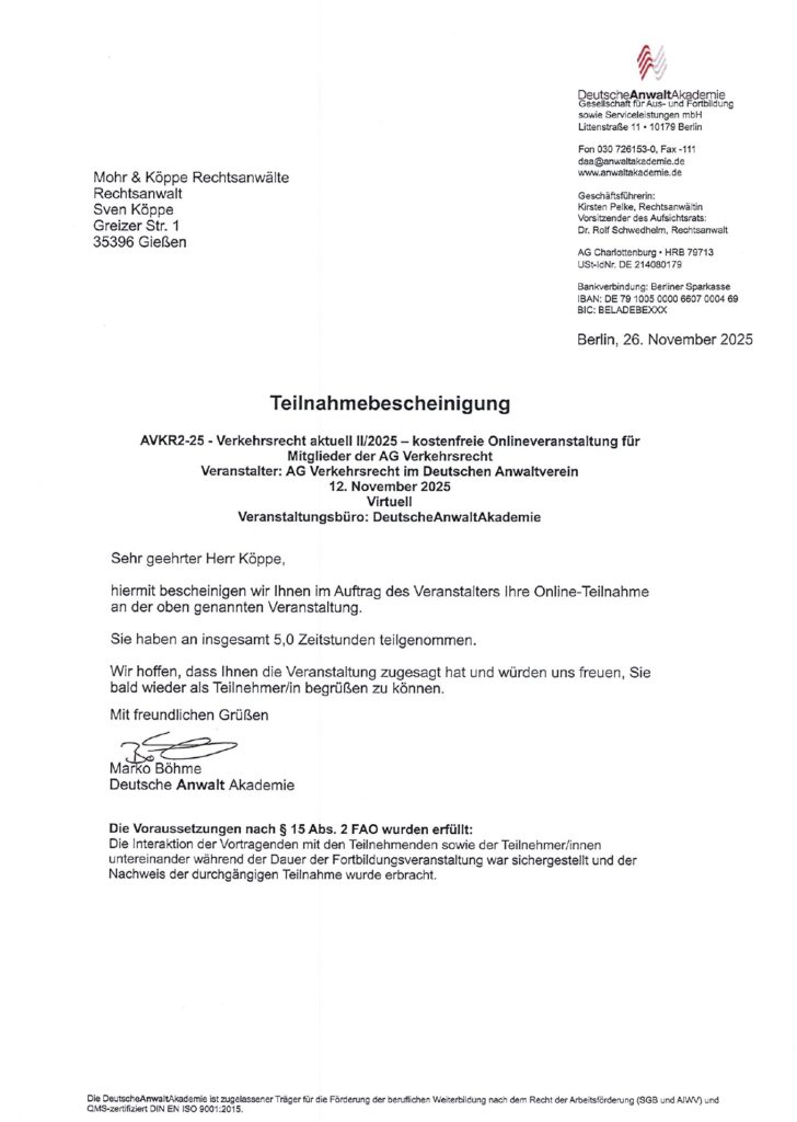 - Verkehrsrecht Querbeet: Aktuelle Rechtsprechung und Entwicklungen aus allen Bereichen des Verkehrsrechts