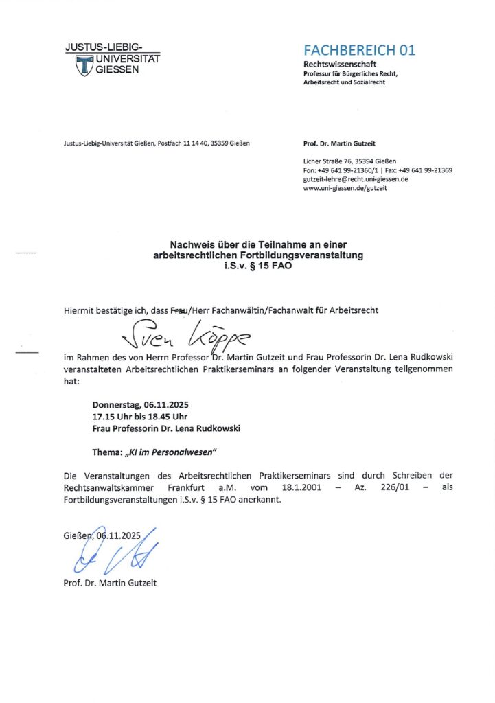 - Aktuelle Rechtsprechung aus den Instanzen